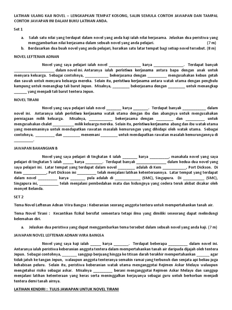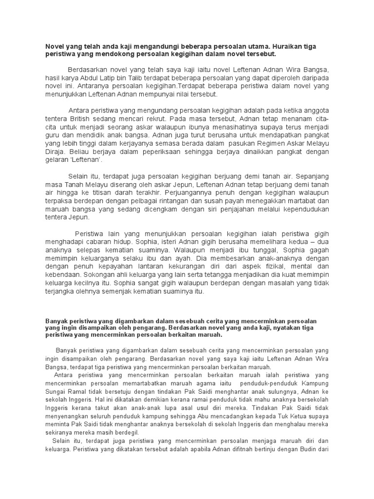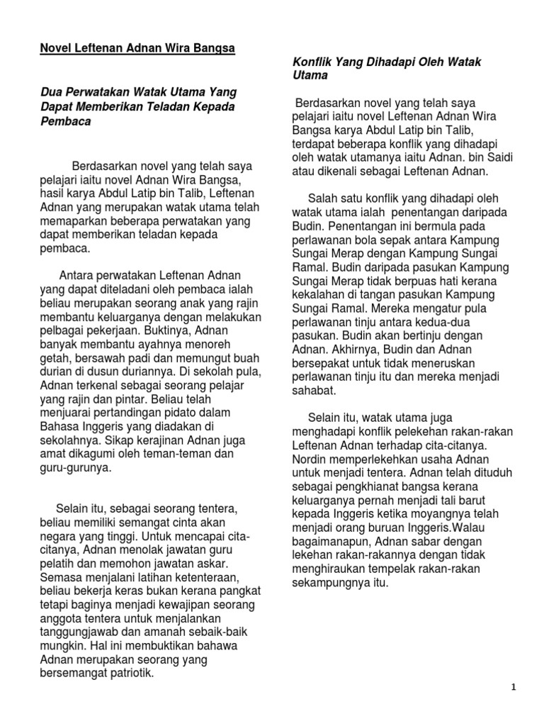 Doc Komsas Fxdilz Smkst Academia Edu from 0.academia-photos.com Komponen sastera dan novel bm / bahasa melayu. Novel yang saya kaji dalam tingkatan 4 ialah leftenan adnan wira bangsa karya abdul latip bin talib. Latar tempat yang pertama ialah xxxxxx. Latar tempat yang pertama adalah di kem tentera haig lines, port dickson. Terdapat banyak latar tempat yang melibatkan leftenan adnan dalam novel ini. Tempat kelahiran laftenan adnan dan tempat laftenan adnan dibesarkan. Contohnya, pak saidi dan keluarganya tinggal di kampung sungai ramal. Novel leftnan adnan wira bangsa :
