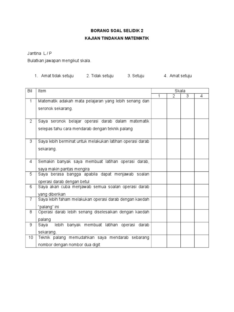 Menurut gillham (2000), terdapat beberapa sebab mengapa borang soal selidik menjadi pilihan kebanyakkan pengkaji. Dalam skala likert 5 mata, setiap mata diberi skor; Borang soal selidik ini mengandungi empat bahagian yang terdiri daripada bahagian a, b, c dan d. Add to collection(s) add to saved. Borang ini sebenarnya boleh dibuat dan disesuaikan berdasarkan objektif penyelidikan untuk mengumpul data makluman.